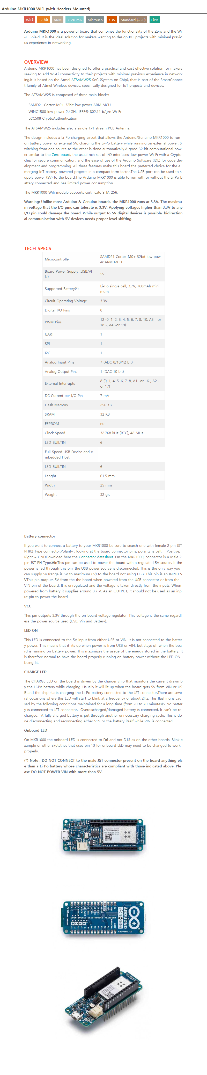 [정품] 아두이노 Arduino MKR1000 WIFI (with Headers Mounted) (ABX00011)